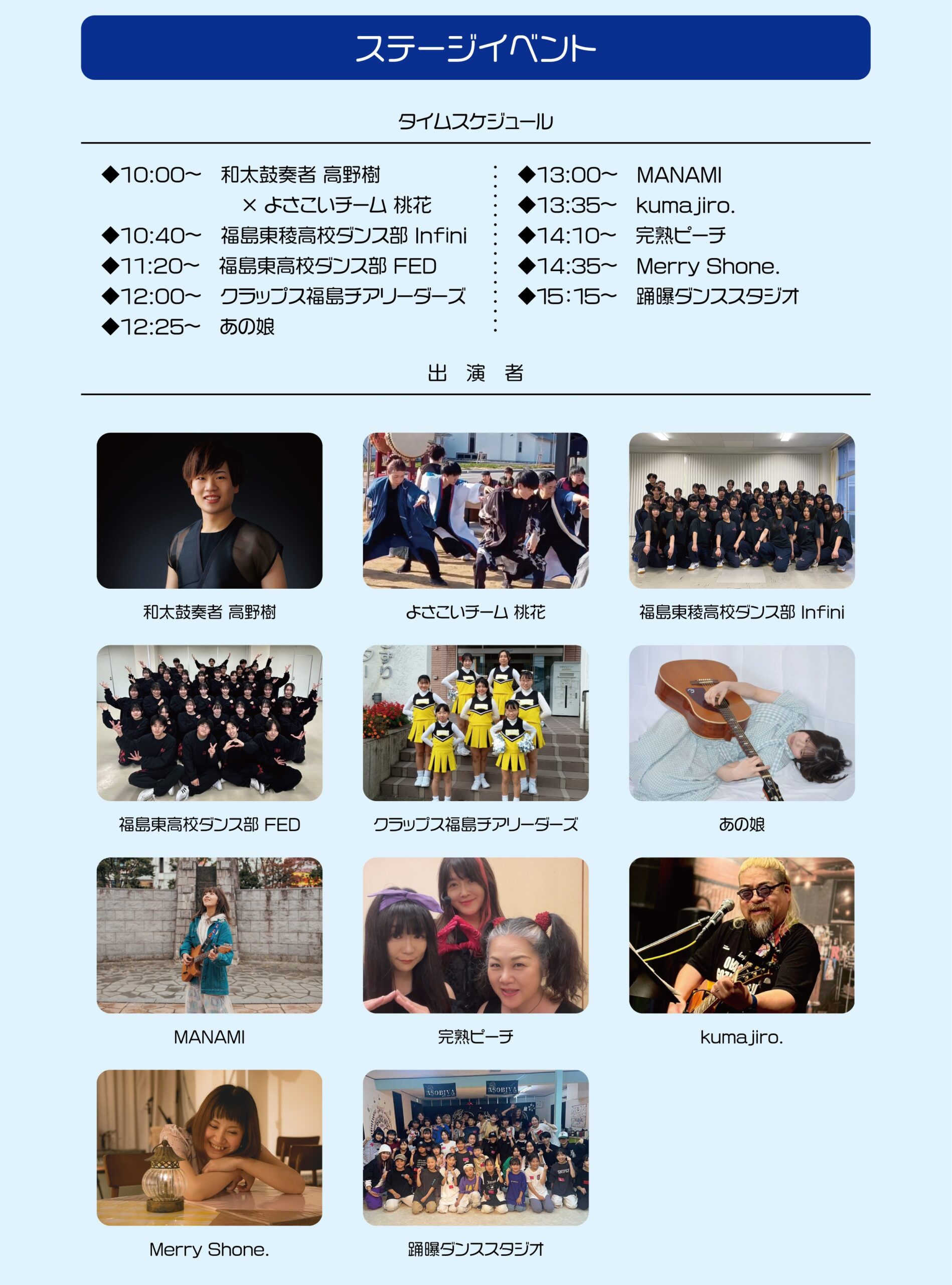 イベントステージでは、大迫力の和太鼓演奏の披露や高校生ダンスチームのパフォーマンス、シンガーソングライターによる「花」をテーマにした歌や演奏も🌸